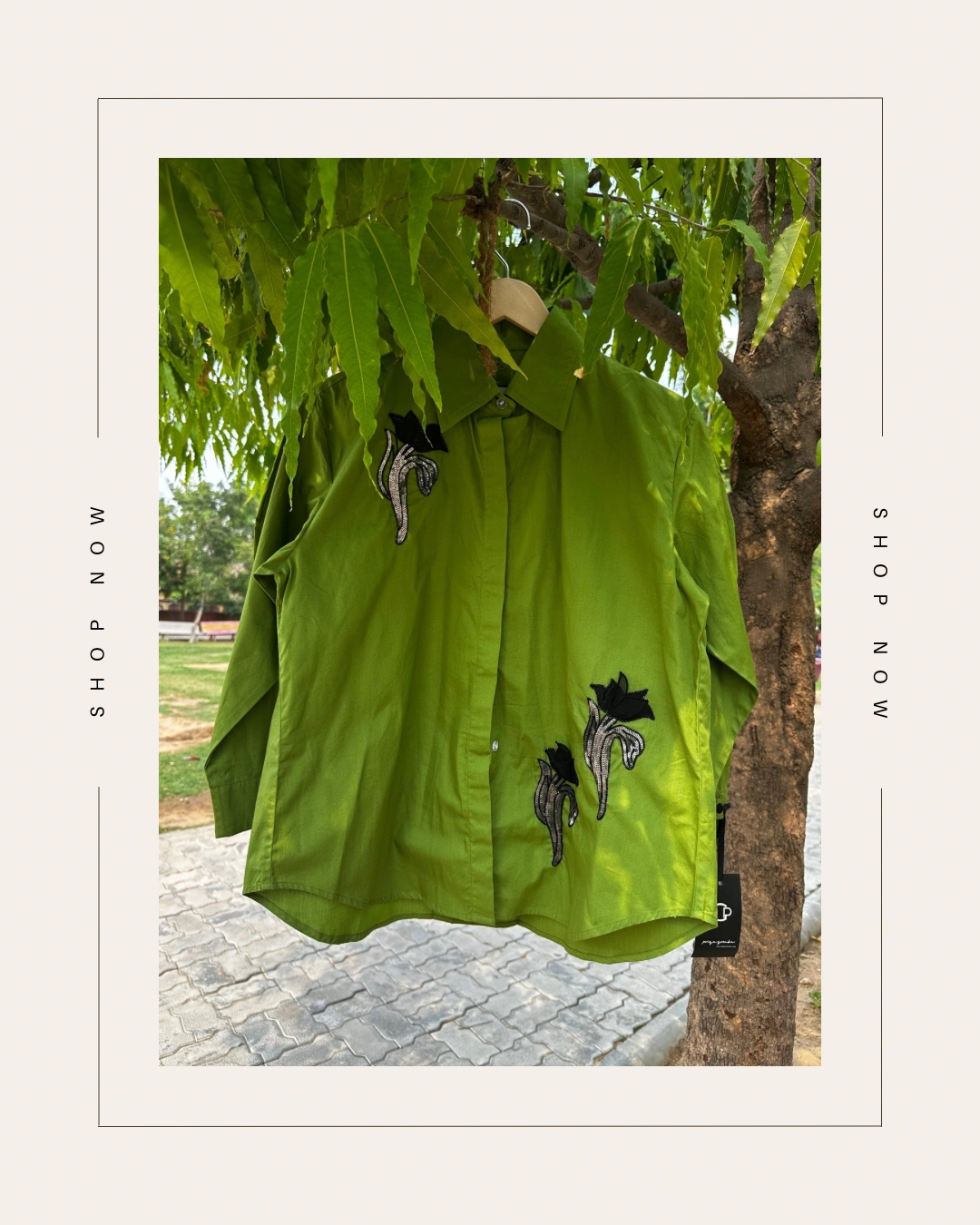 Bloom where you are stitched 🌼 Handworked florals add a charming twist to your everyday shirt.
