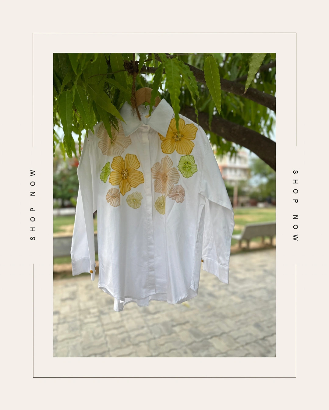 Bloom where you are stitched 🌼 Handworked florals add a charming twist to your everyday shirt.